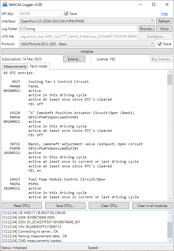 The DTC reading feature is fully protocol specific, and status data is also decoded. You can easily copy-paste or save the fault codes to a text file, because everything uses simple text-based formatting.